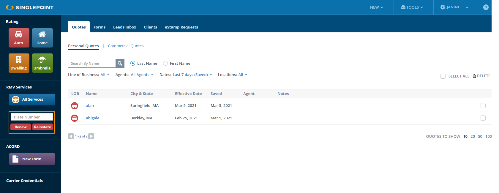 In this example, we can see that "Jane Doe" works for the "Doe Ins Agency Inc".