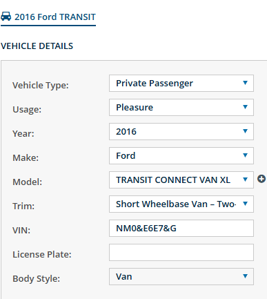 You will need to manually enter the year, make, model and trim, which will then get you a partial VIN, which is enough to get a comparative rate.