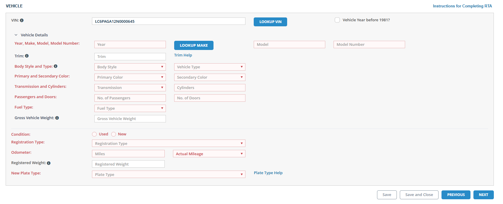 Agent will click GO BACK Then manually enter the vehicles information.
